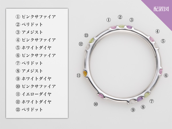 オプションとして、指輪の内側に誕生石等をお留めすることが可能です。