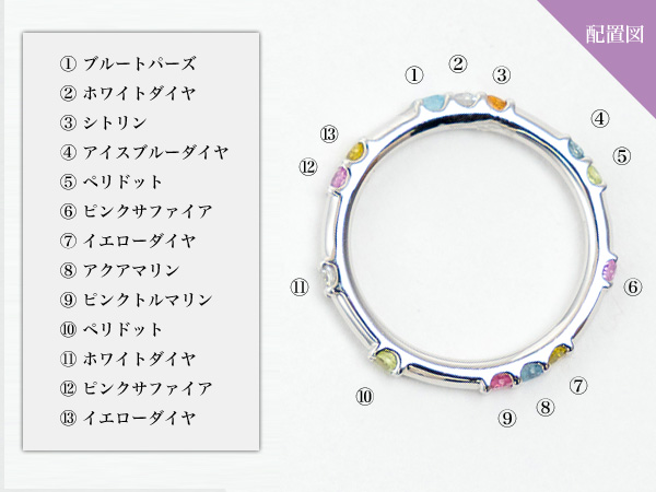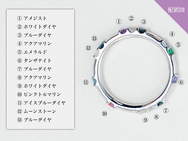 指輪の内側にブルーダイヤや誕生石等をお留めすることも可能です。(留める位置はご指定頂けません)